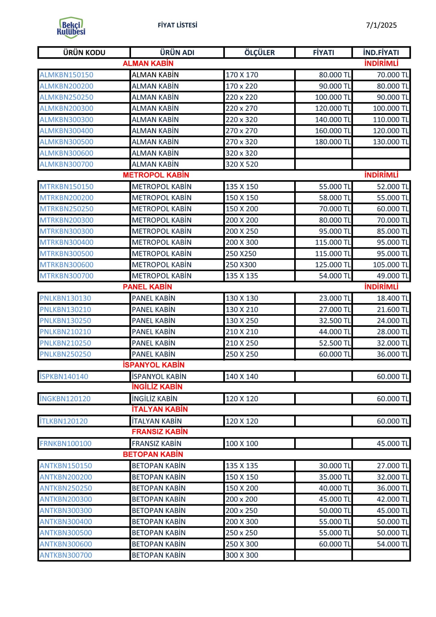Fiyat Listesi