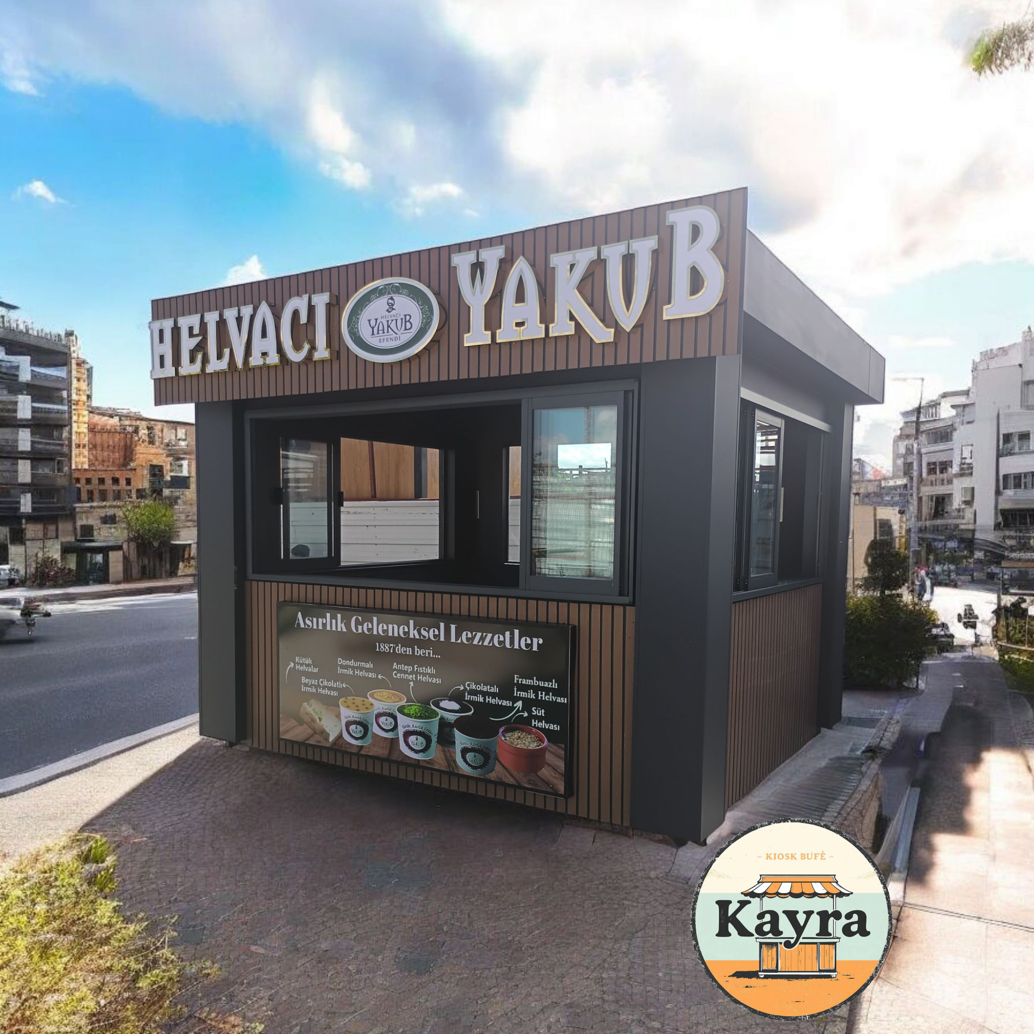 Kiosk Büfe  Satış büfesi Ekmek Büfesi Meşrubat Büfesi köfteci büfesi dönerci büfesi tanıtım büfesi bilet büfesi ve gişesi  tatlıcı büfesi Şık tasarım sitilleriyle bütünleşen görünümüyle modern mimarinin yeni gözdesi.  Kiosk büfe in görünümünde estetik özünde kalite ve konfor var. Kiosk büfe estetiğiyle konulduğu her yere modern görünüm kazandırıyor. Yapıyı kullananlara ergonomik konfor üstünlüklerini yaşatıyor. Yeni nesil kiosk büfe Satış büfesi Ekmek Büfesi Meşrubat Büfesi köfteci büfesi dönerci büfesi tanıtım büfesi bilet büfesi ve gişesi  tatlıcı büfesi     ile mekanlar güzelleşiyor, kullananlara coşku, neşe ve yüksek verimlilik kazandırıyor