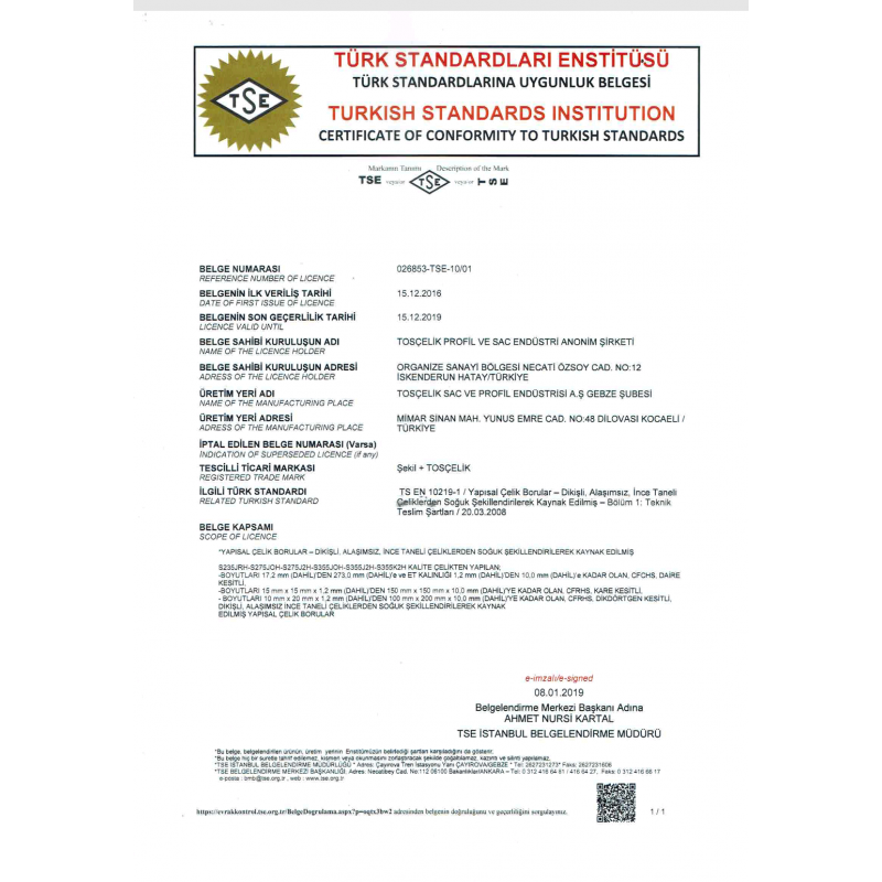 Profil TSE Belgesi